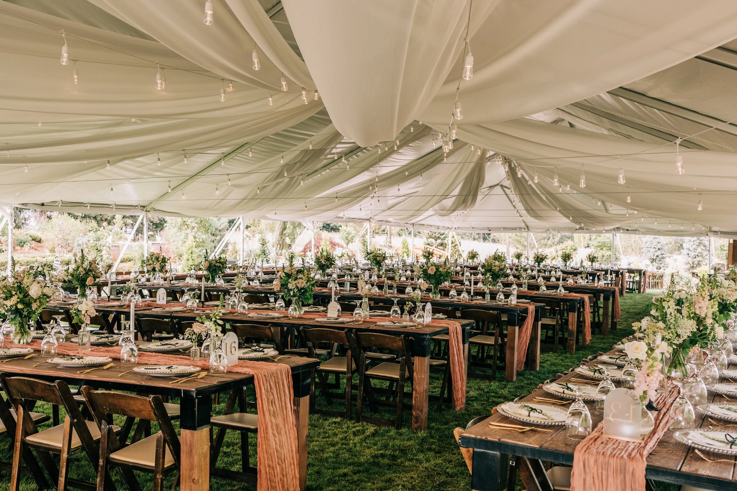 Tables and Chairs for 250 guests (10 foot dark stained, wooden tables)